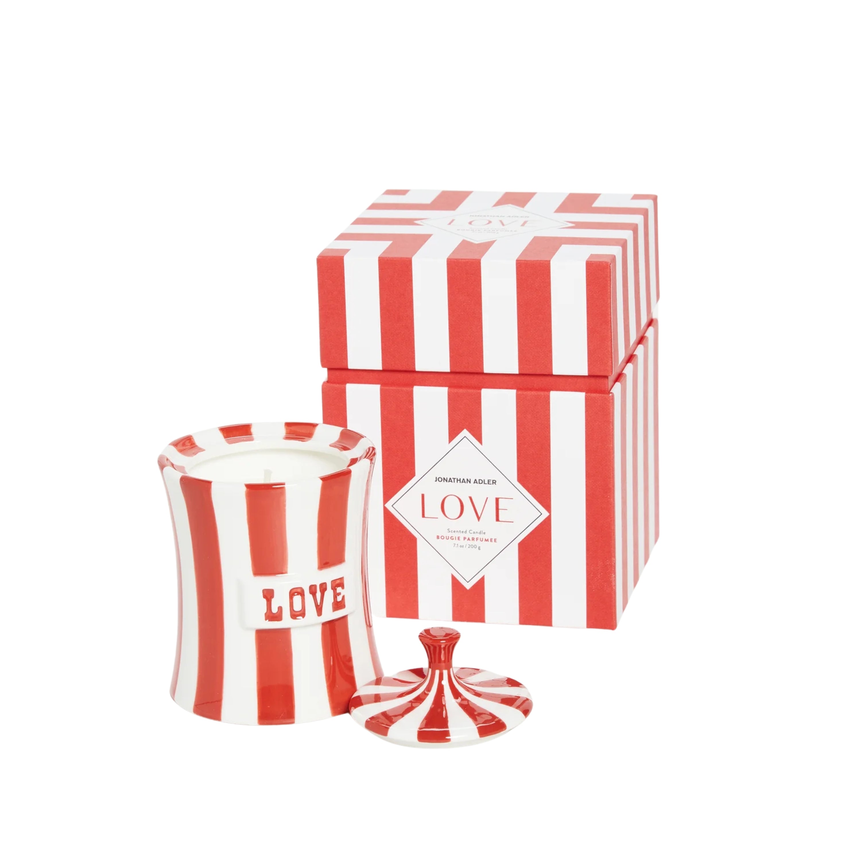 Jonathan Adler pairs his iconic porcelain Vice canisters with playful, provocative scents—Lust, Love, and Envy—that nod to our favorite indulgences. Each high-fired porcelain vessel is hand-painted and finished with a glossy glaze, complete with a removable lid. Once the candle burns through, the jar doubles as a chic catchall for whatever you’re hiding. Arrives in bold, gift-ready packaging.