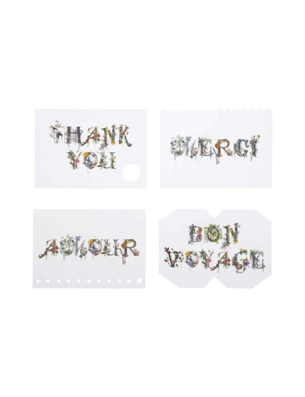 Inside, find four die-cut and embossed flat cards, each with a simple, elegant message: Amour, Bon Voyage, Merci, and Thank You. Paired with Christian Lacroix’s signature Bellechasse envelopes, featuring a die-cut flap and printed interior, this set turns every note into a memorable gesture.