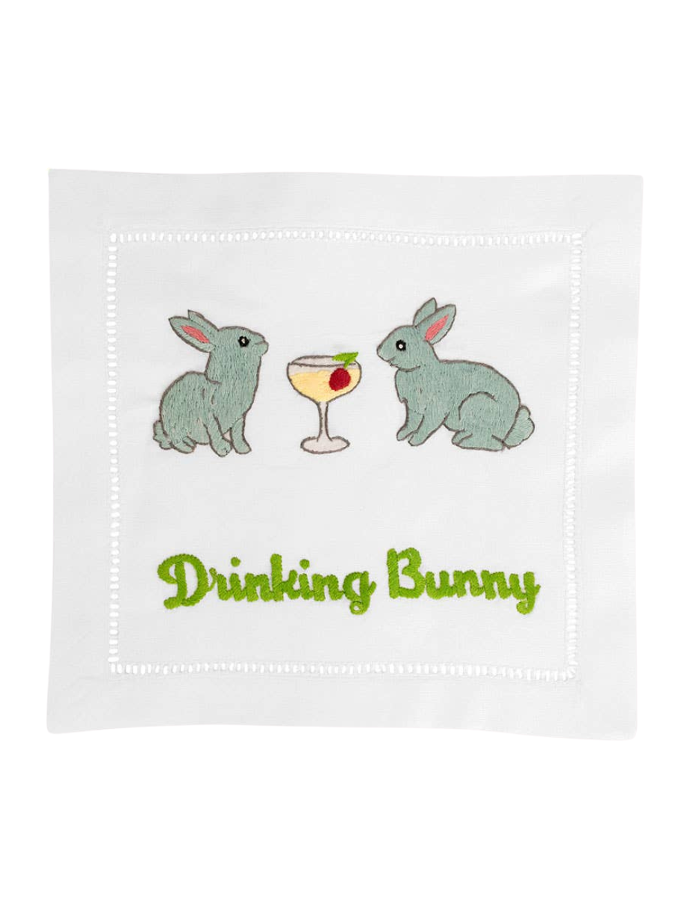Witty, refined, and ready to party. These cotton cocktail napkins feature classic hemstitching and embroidered humor—perfect for entertaining with style.