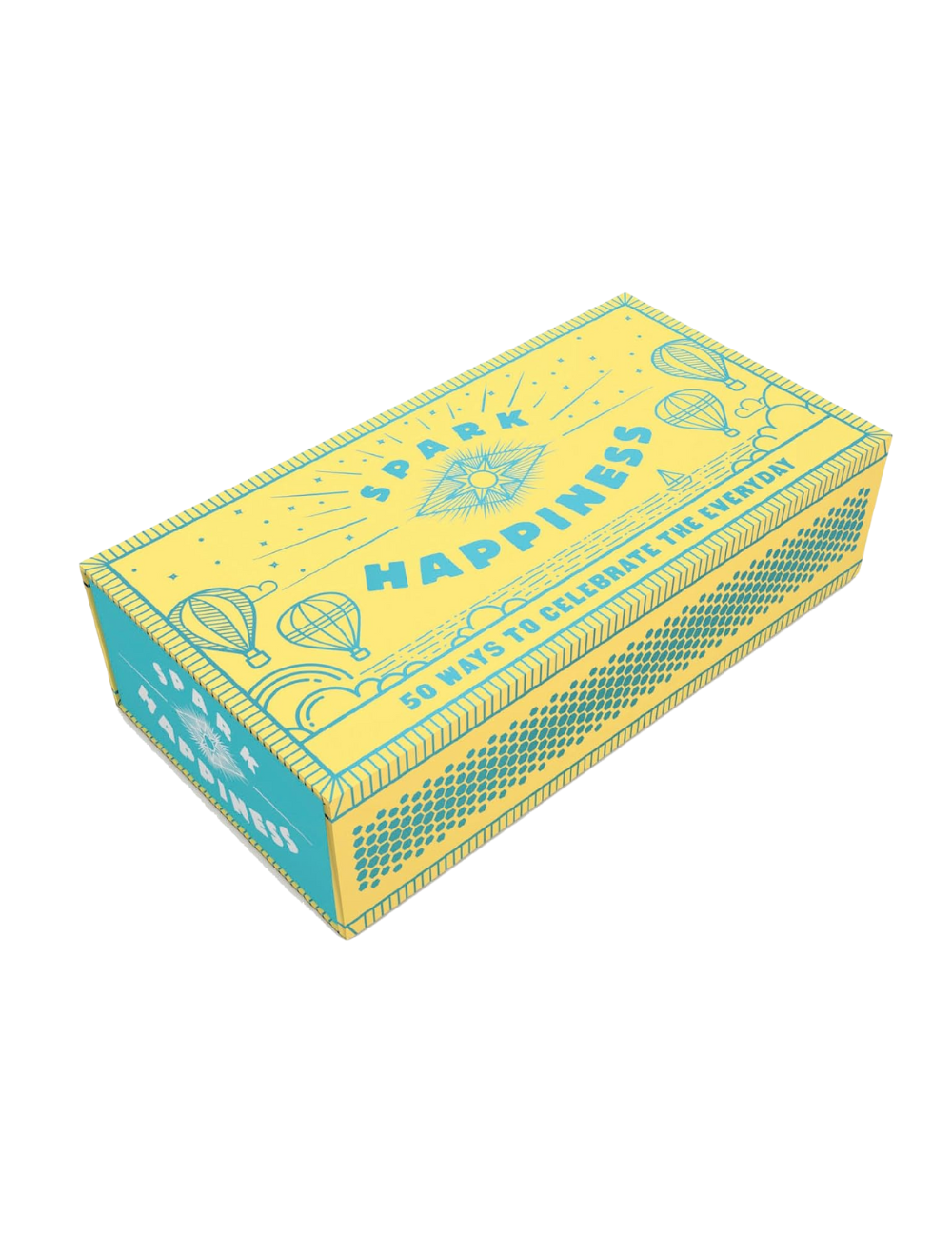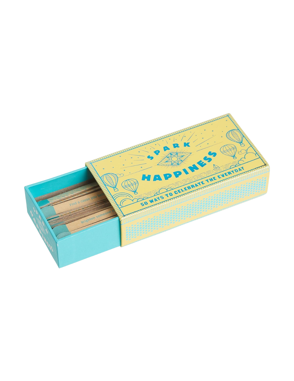 Happiness in a box. Filled with inspiring prompts to help you celebrate everyday joys, cultivate gratitude, and find wonder in the little things. A thoughtful, affordable gift that sparks fresh perspectives. Includes 50 faux matchsticks with printed prompts.